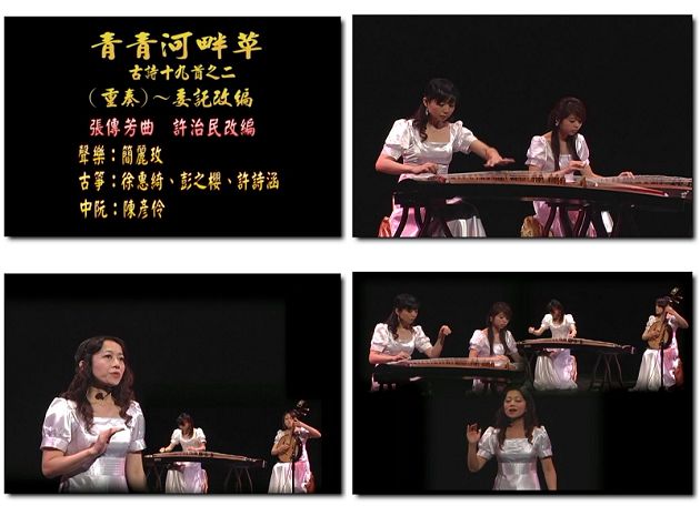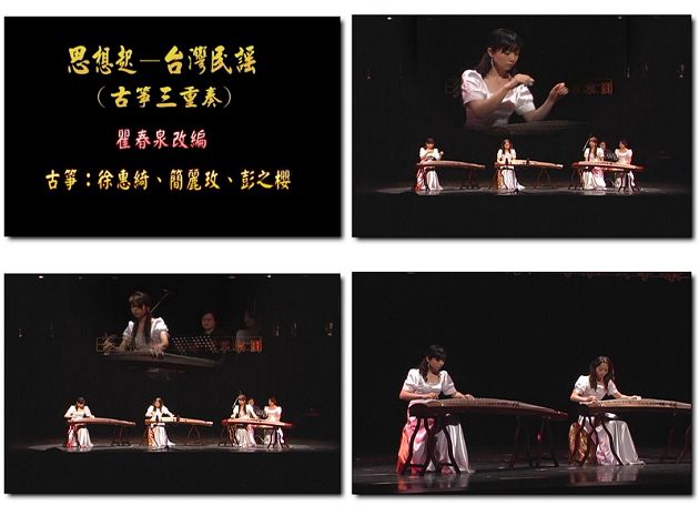 2010年11月14日演出地點:桃園縣政府文化局演藝廳風雅頌古箏團:徐惠綺.簡麗玫.彭之櫻.許詩涵.陳彥伶 天上人間箏團:孫素琴.莊玉玟.李萱.林鳳蓁.徐瑀薇.陳煦安.劉康捷.鄭芳宜.稽慧倫.侯與俐.黃品綺
